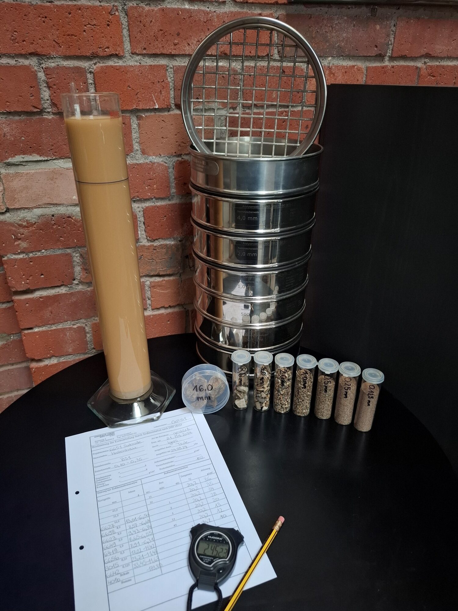 - Kornverteilung (Ton, Schluff, Sand, Kies etc. / DIN EN ISO 17892-4),